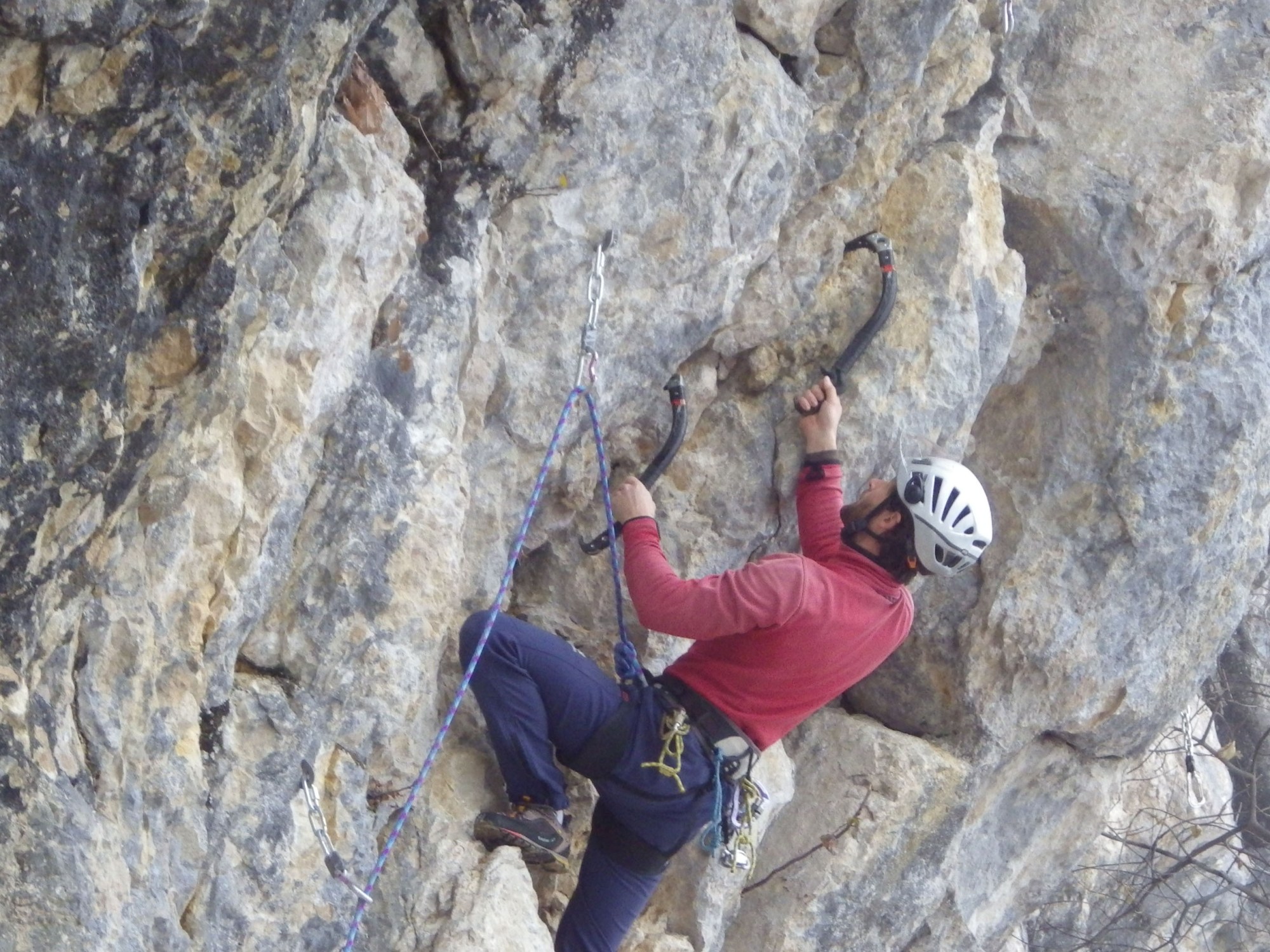 C’est que l’escalade est le terrain d’entraînement pour celui qui aimerait faire des grandes voies de rocher dans un milieu alpin et que le dry se prête parfaitement aux amateurs du froid et de grandes courses mixtes.